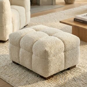 – Soft oatmeal boucle fabric adds warmth and texture