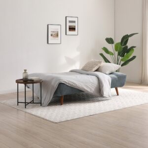 Switch from sofa to bed in seconds with the smooth click clack mechanism. This clever design offers three positions – upright, reclined, or fully flat – giving you flexibility for sitting, lounging, or sleeping. The generous sleeping area of 121cm x 183.5cm provides ample space for a comfortable night’s rest, while the sturdy frame ensures lasting support.